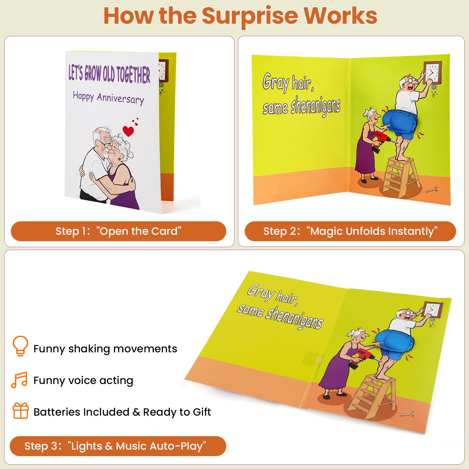 Funny Anniversary Card with Shaking Motion & Humorous Sound, Interactive Anniversary Cards for Him Her Husband Wife Couple, Gift for Wedding Anniversaries, Long-Term Relationships